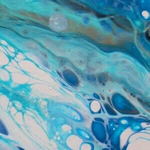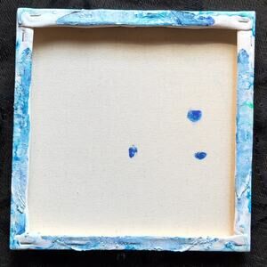 Handmade Acrylic Fluid Art Bloom Blue and White On Stretched Canvas 10"×10"