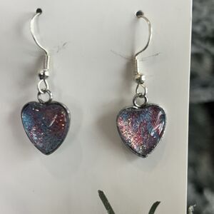 Handmade Acrylic Pour Dangle Heart Earrings Hypoallergenic Jewelry ARTISAN