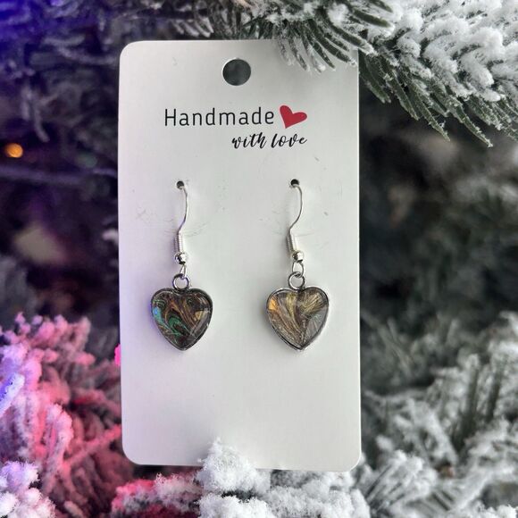 Handmade Acrylic Pour Heart Earrings Dangle Hypoallergenic Jewelry Holiday Gift