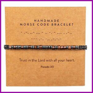 Brand new and in flawless condition — this handmade Morse code bracelet offers a minimalist, personal way to wear your faith as a daily reminder. The adjustable design is perfect for daily wear and makes a thoughtful, inspirational gift.