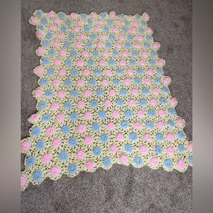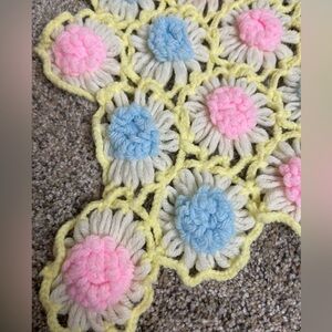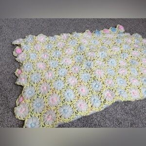 Handmade Afghan Pink Blue Pastel 3D Flowers Crochet Granny Throw Blanket 48 X 37.