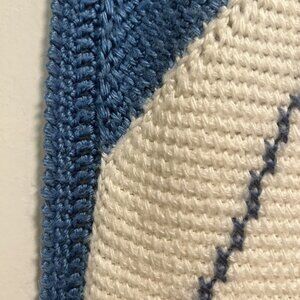 Handmade Afghan Throw Knit Blanket Blue Floral Butterfly Cross Stitch 64 x 54"