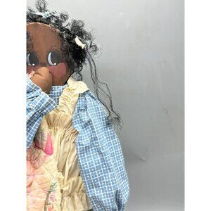 Handmade African American Wooden Doll Quilted blanket Dress & Welcome Sign READ