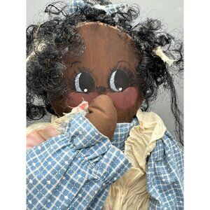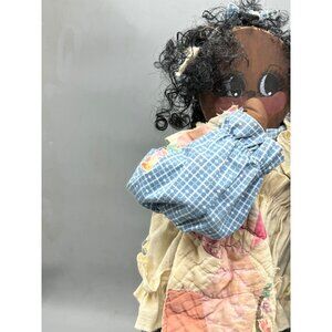 Handmade African American Wooden Doll Quilted blanket Dress & Welcome Sign READ