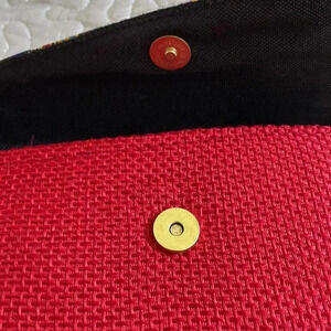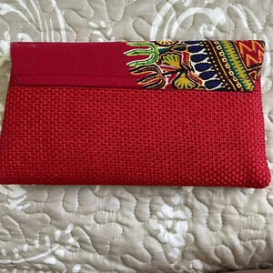 Beautiful handmade clutch from Africa. Never been used. Zipper top and one small change zipper picked on inside. Button closure.