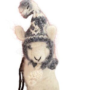 Crafted with care, these charming alpaca figurines bring the warmth of the Andes to your home. Dressed in intricate knit hats and scarves, they radiate personality and gentle whimsy, perfect for adding a touch of charm to any space. Their soft wool texture speaks to authentic craftsmanship and cozy aesthetics.