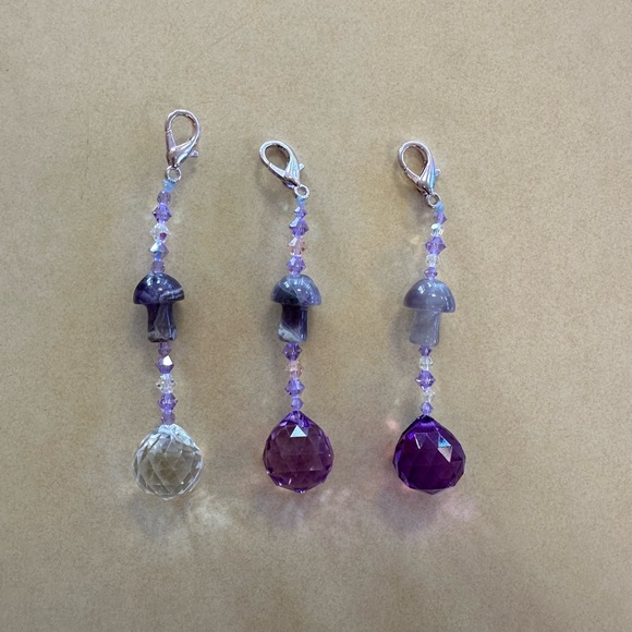 Handmade Amethyst Mushroom Keychain