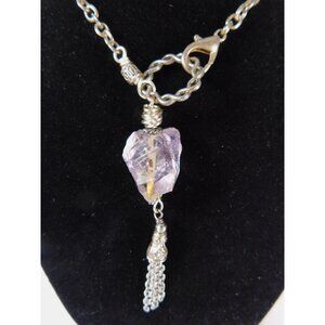 Color: Silver tone with light purple amethyst stone, chain tassel accent.