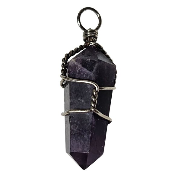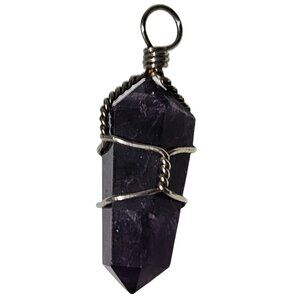 This amethyst point pendant offers a striking natural crystal design wrapped in elegant silver wire. Lightweight and versatile for various jewelry applications.