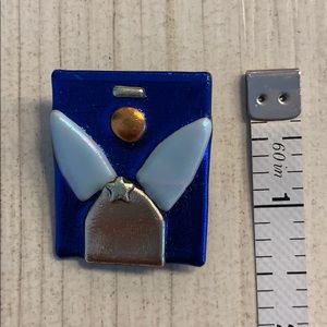 Beautiful, handmade angel pin in blue, gold and silver tones.
