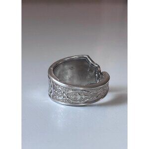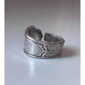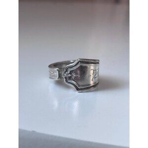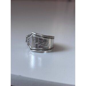 Handmade Antique spoon ring with monogram “N”. This ring is made from an International Silver Co/ Rogers Bros "Ancestral" pattern silver plated spoon. This ring measures a size 10.5.