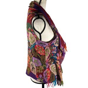Handmade Anu XL Colorful Wool open Vest Embroidered Floral Design Fringe boho