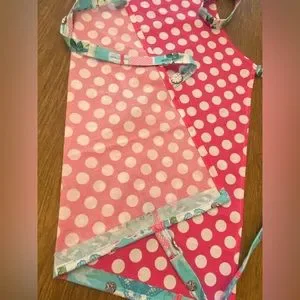 Pink polka dot trimmed in Paris/Eiffel Tower themed teal fabric