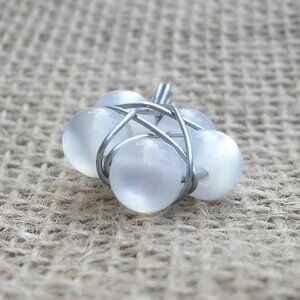Handmade star flower pentacle pendant. Made with white aqua aura resin beads and silver wire. About 1 1/4 inches high, 3/4 inch wide. New item from my local shop. For women or men. Great for anyone who likes unique pentacles.