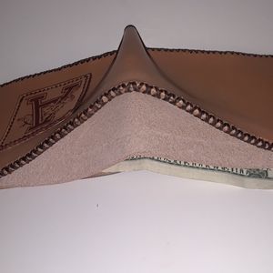 Hand Made Genuine Leather Wallet. 100% real bovine leather. Hand stitched. Waxed hemp lace. Laser engraved leather patch. + plus $1 For luck!!
