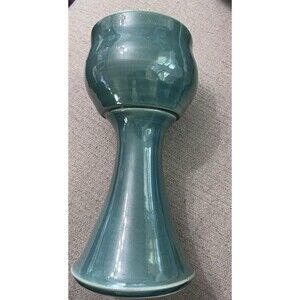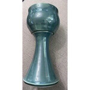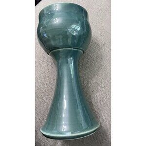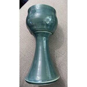 Handmade Art Pottery Goblet Green Large Tall Handpainted Votive Holder Ceramic