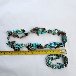Genuine Turquoise, aqua Blue Stone Chrysacolla & pearl necklace & bracelet set