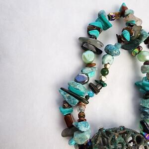 Handmade Artisan Genuine Turquoise Blue pearl Chrysacolla boho beach necklace