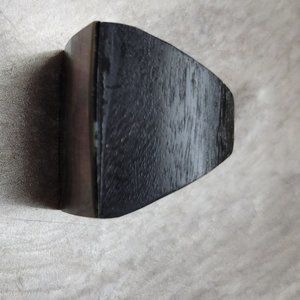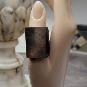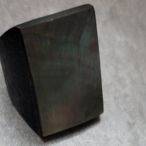 Handmade Arts and Crafts Island Jewelry polish wood and Sea Paua Shell Top Paste 1 1/8"x 5/8" Wide Ring size 8 Vintage 1960s Moda Jewelry