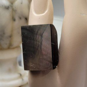960s Mod Island Ring Wide made of Island Wood and Paua Shell Paste on Tropical Wood Hand Made Band.