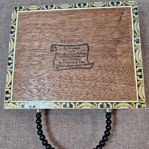 Handmade Arturo Fuente Imported Cigar Box Purse With Black Bead Handle And Tasse