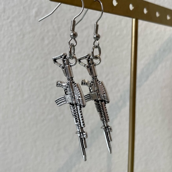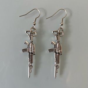 AUTOMATIC RIFLE GUN EARRINGS ๐Ÿ’Ž hardware is sterling silver ๐Ÿ’Ž ๐Ÿ–ค handmade with love ๐Ÿ–ค