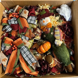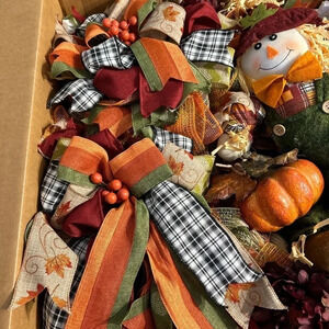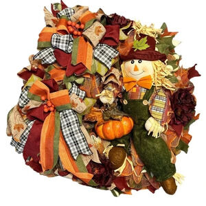 Handmade Autumn Wreath with Scarecrow and Pumpkins