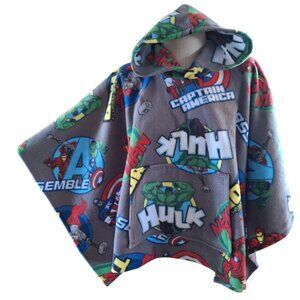 Handmade Avengers Fleece Poncho M Medium Cape With Hood & Pocket Hulk Iron Man