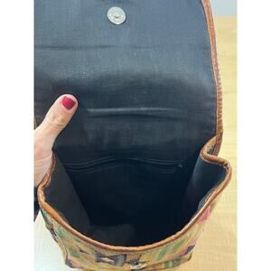 This is a handmade purse, woven fabric and leather