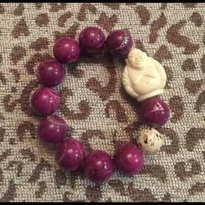 BNWT: purple splatter and ivory Buddha stretch bracelet. Handmade. For good luck! All jewelry is one of a kind made by me! check out more stuff in my etsy shop: etsy.com/shop/el7e • for new styles, flash sales, and fresh updates; follow me on IG @_originelle & originelle on Facebook! *use code POSH777 for 15% off on etsy!* STAY TRUE! 📿 o r i g i n e l l e 💎✨