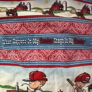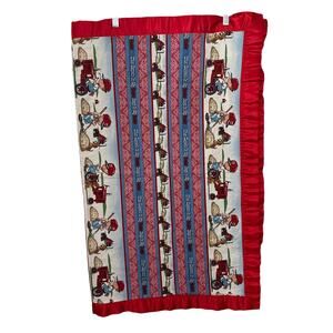Handmade Baby Crib Throw Blanket Sat Trim 40x34" Tractor Farming Red Barn Dog
