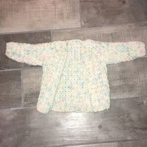 This is a hand made / newborn to 12 months / includes both jackets / little cardigan and the beautifully embellished button down with pearls / also included is a beautiful matching baby hat with pink ribbon for closure this set is truly one of a kind handmade.