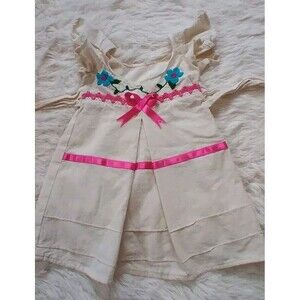 Handmade Baby Girls Boho Dress Embroidered Bow Ivory Size 3-9 Months