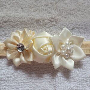 Handmade Baby Girls Headband Cream/Ivory Size 0-3m 12"-14"D New