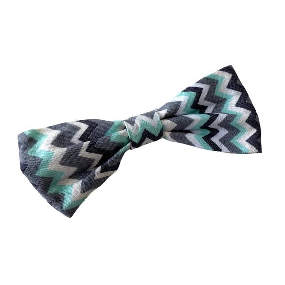 Handmade Baby Toddler Bowtie - Chevron - Aqua Grey White