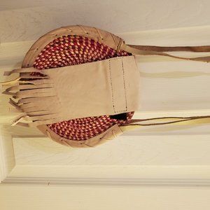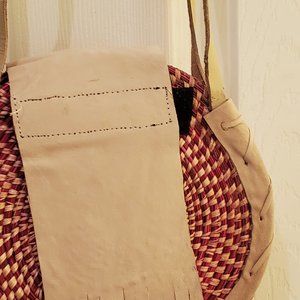 Red handmade spring and summer bag. This bag comes with matching ear ring and necklace.