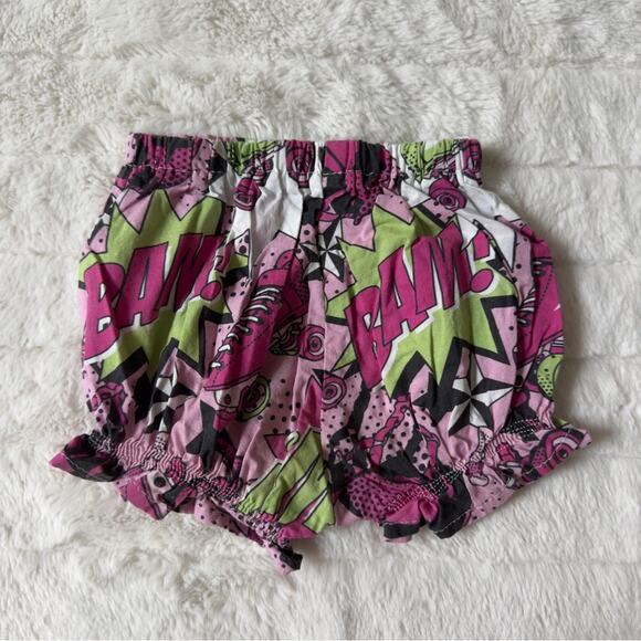 Handmade Bam! Roller Skate Pink Green Graphic Print Baby Girl bloomers shorts
