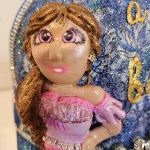 Handmade Baseball Hat - Adjustable - 100% Cotton - Blue and Pink - Sparkles!
