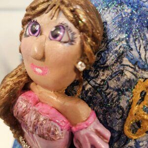 The lady is made with air clay and is very light. She does not make the hat heavy at all.