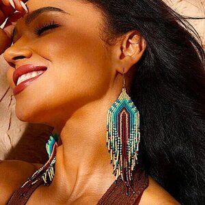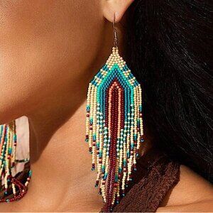 Handmade Beaded Boho Dangle Earrings Tribal Native