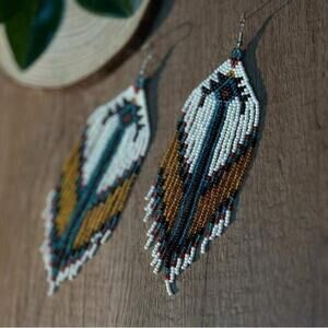 Handmade Beaded Boho Dangle Earrings Tribal Native