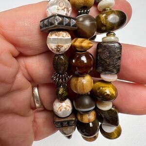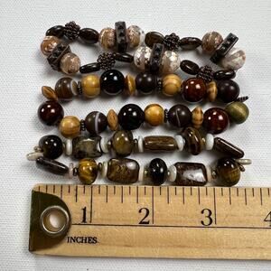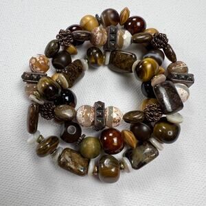 Handmade Beaded Bracelet Trio Chunky Brown Earth Tones Mixed Metals Wood