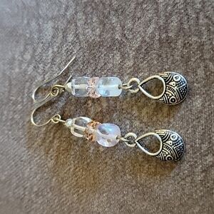 Handmade Beaded Czech Glass Dangle Hook Earrings