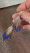 Handmade Beaded Earrings Medium Length Earrings Gold, Blue, Iridescent White