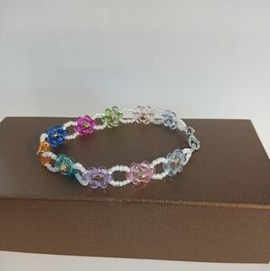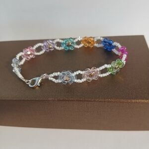 Vibrant bracelet with multicolored beaded flowers. Perfect for adding a pop of color to any outfit. Handcrafted in Key Largo, Florida Keys