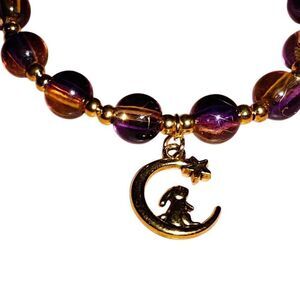 Handmade Beaded Gold Moon Bunny Stretch Bracelet