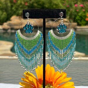 Check my other listings: seed bead earrings jewelry necklace ring Aztec style ethnic tribal indigo woven handmade hand beaded hand sewn tassel fringe fancy crystal bling big chunky boho bohemian statement stage dramatic funky fun young mixed look designer inspired fashion unique trendy trending light dark bold teal turquoise herringbone bridal wedding formal dress dressy casual vacation cruise tropical beach ocean party spring summer iridescent sparkle shimmer multicolor colorful mixed metals sale triangle hoop post large huge art artist artisan festival tribal ethnic fringe tassel dangle seed bead miyuki delica Indian southwest west western rustic Texas fashion head shot pageant prom runway diva artisan native American native American style long fringe shoulder dusters southwest Spanish Mexican Indian sexy hippie 70s fine vintage woman gift statement stone jewel jeweled large huge natural whimsical rhinestone faux diamond multi color free spirit birthday anniversary wedding gift