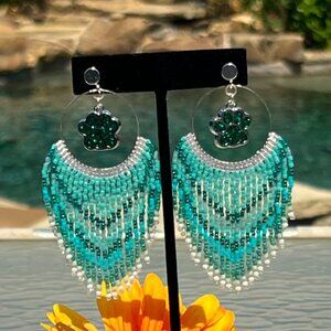 Check my other listings: seed bead earrings jewelry necklace ring Aztec style ethnic tribal indigo woven handmade hand beaded hand sewn tassel fringe fancy crystal bling big chunky boho bohemian statement stage dramatic funky fun young mixed look designer inspired fashion unique trendy trending light dark bold teal turquoise herringbone bridal wedding formal dress dressy casual vacation cruise tropical beach ocean party spring summer iridescent sparkle shimmer multicolor colorful mixed metals sale triangle hoop post large huge art artist artisan festival tribal ethnic fringe tassel dangle seed bead miyuki delica Indian southwest west western rustic Texas fashion head shot pageant prom runway diva artisan native American native American style long fringe shoulder dusters southwest Spanish Mexican Indian sexy hippie 70s fine vintage woman gift statement stone jewel jeweled large huge natural whimsical rhinestone faux diamond multi color free spirit birthday anniversary wedding gift