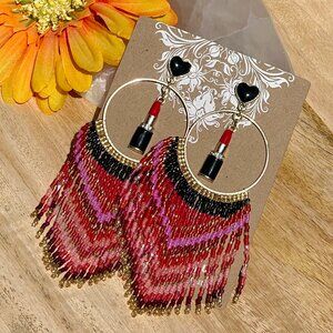 Handmade Beaded Long Tassel Fringe Dangle Drop Lightweight Post Hoop Earrings