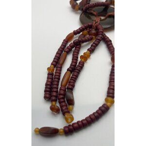 Handmade Beaded Necklace Multi-Strand Tassel Pendant Wood Tribal Boho Nature